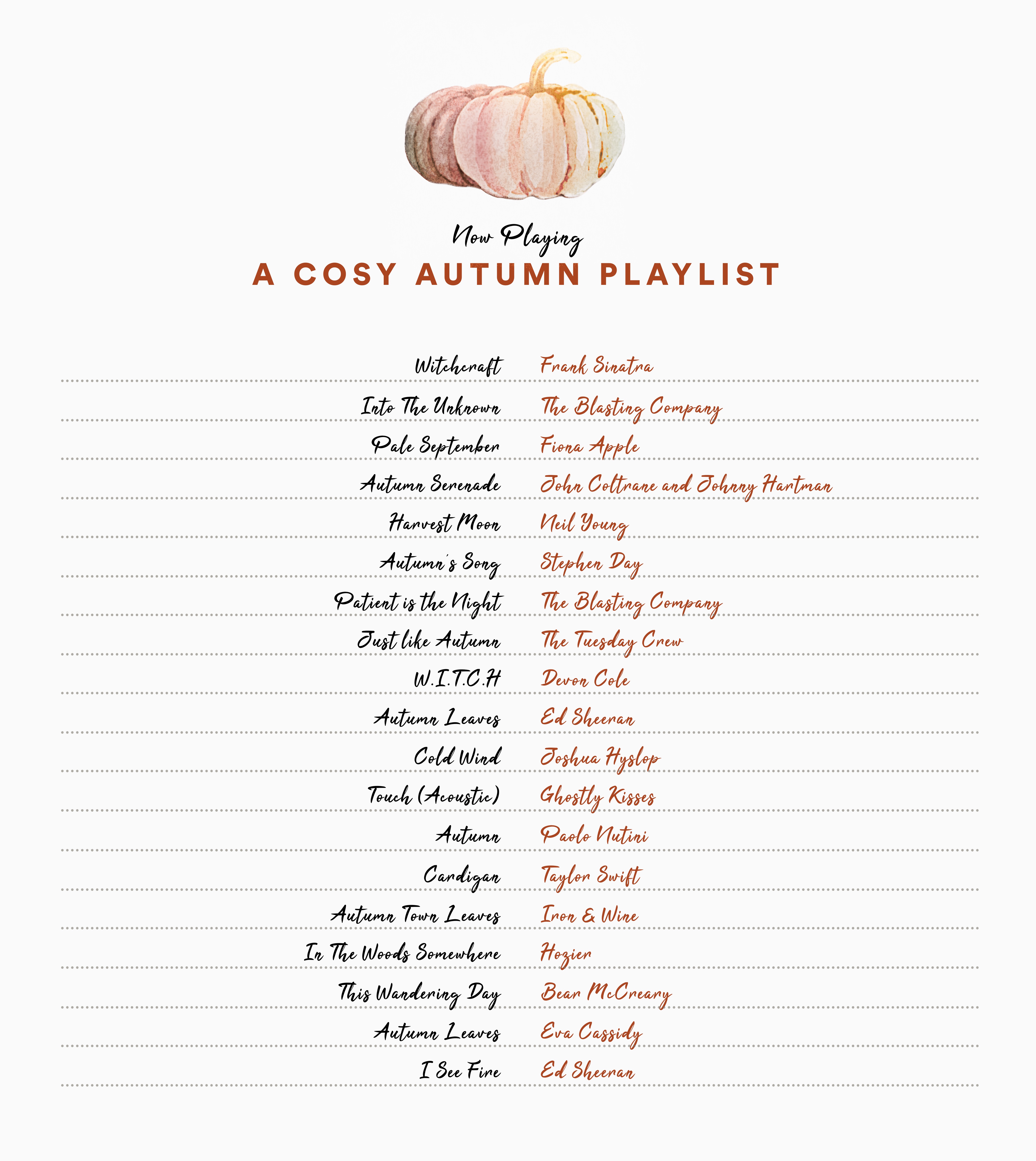 Music is one of the best ways to set the tone of the season, so I hope this playlist can help to get you in the mood for autumn.