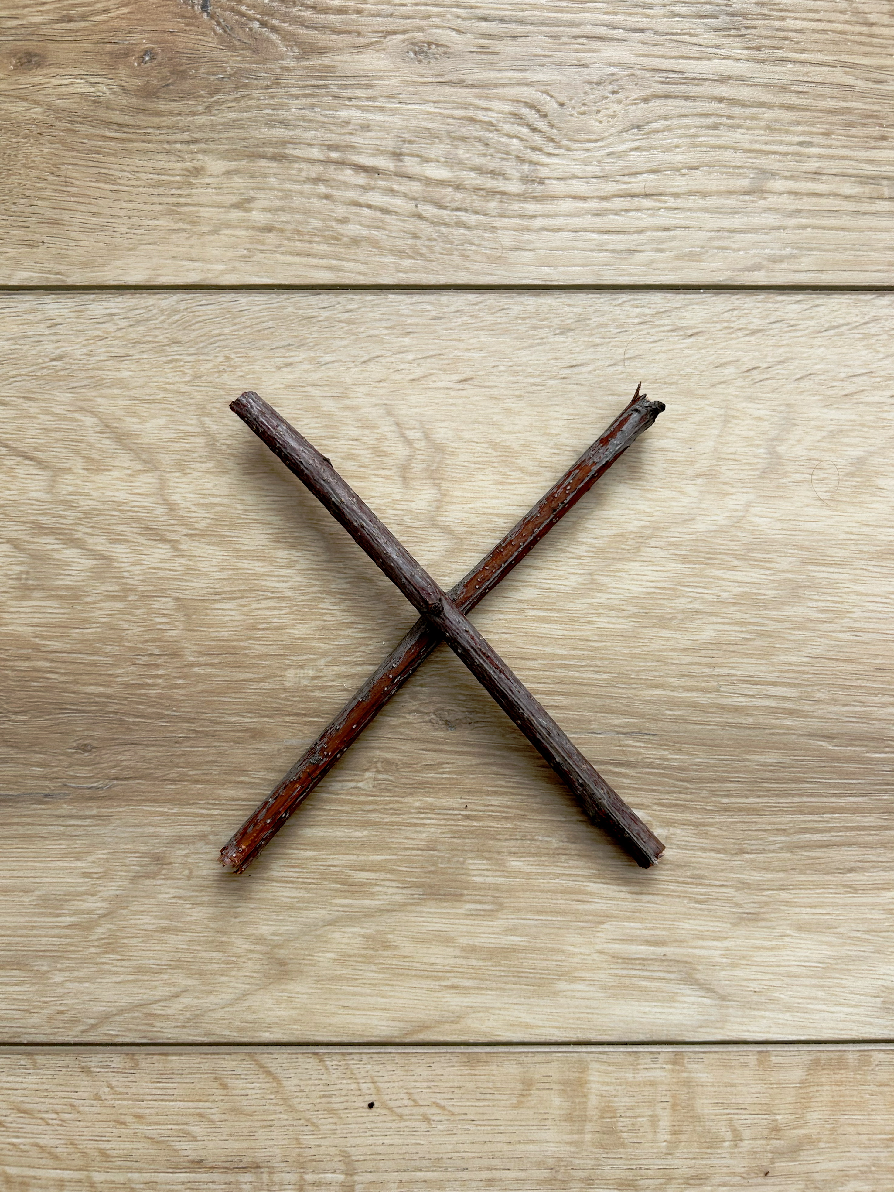 1. Choose four sticks. Cut three to roughly the same size, and one slightly smaller.