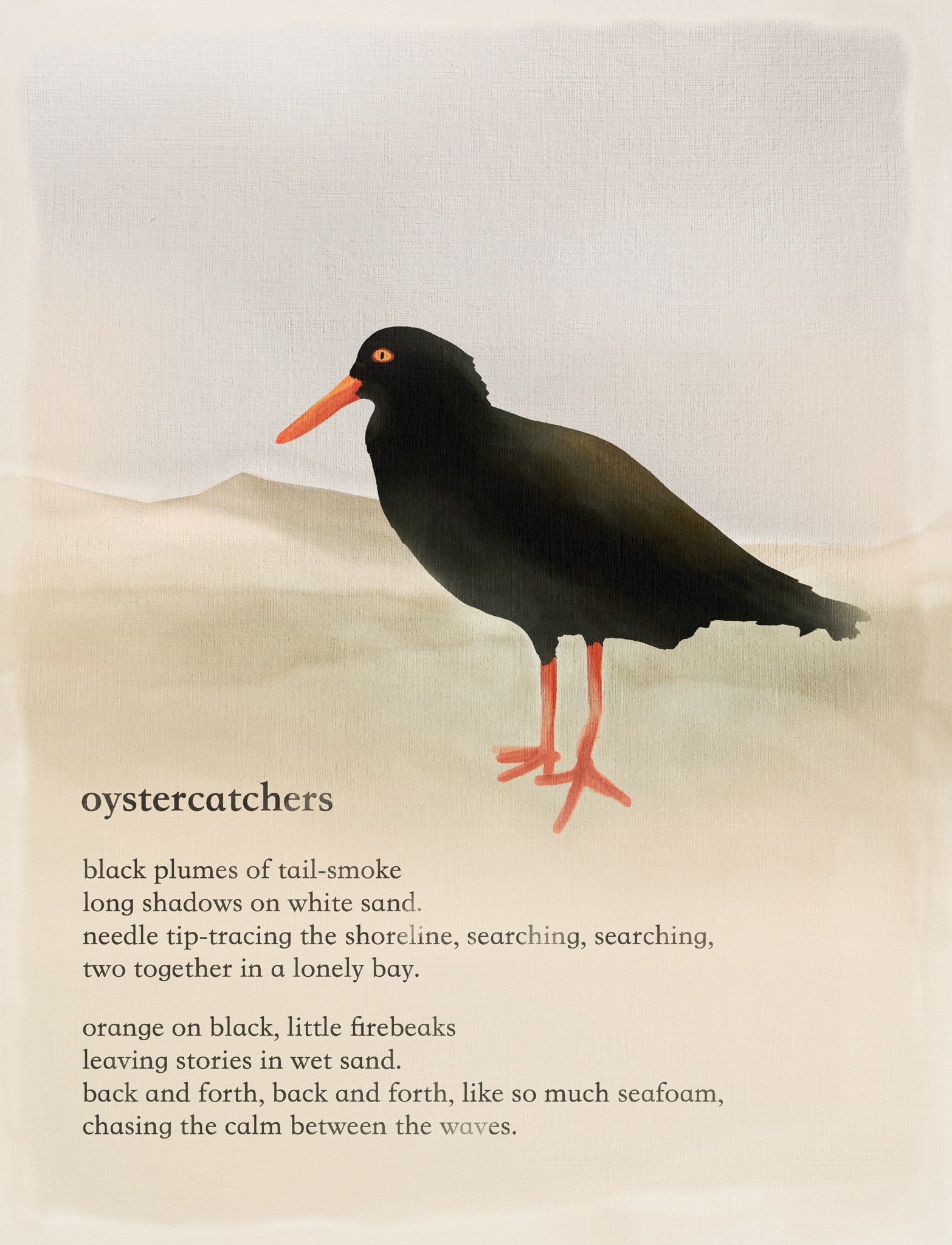 My husband made the artwork, and I think he perfectly captured the essence of the oystercatcher. What a wonderful souvenir.